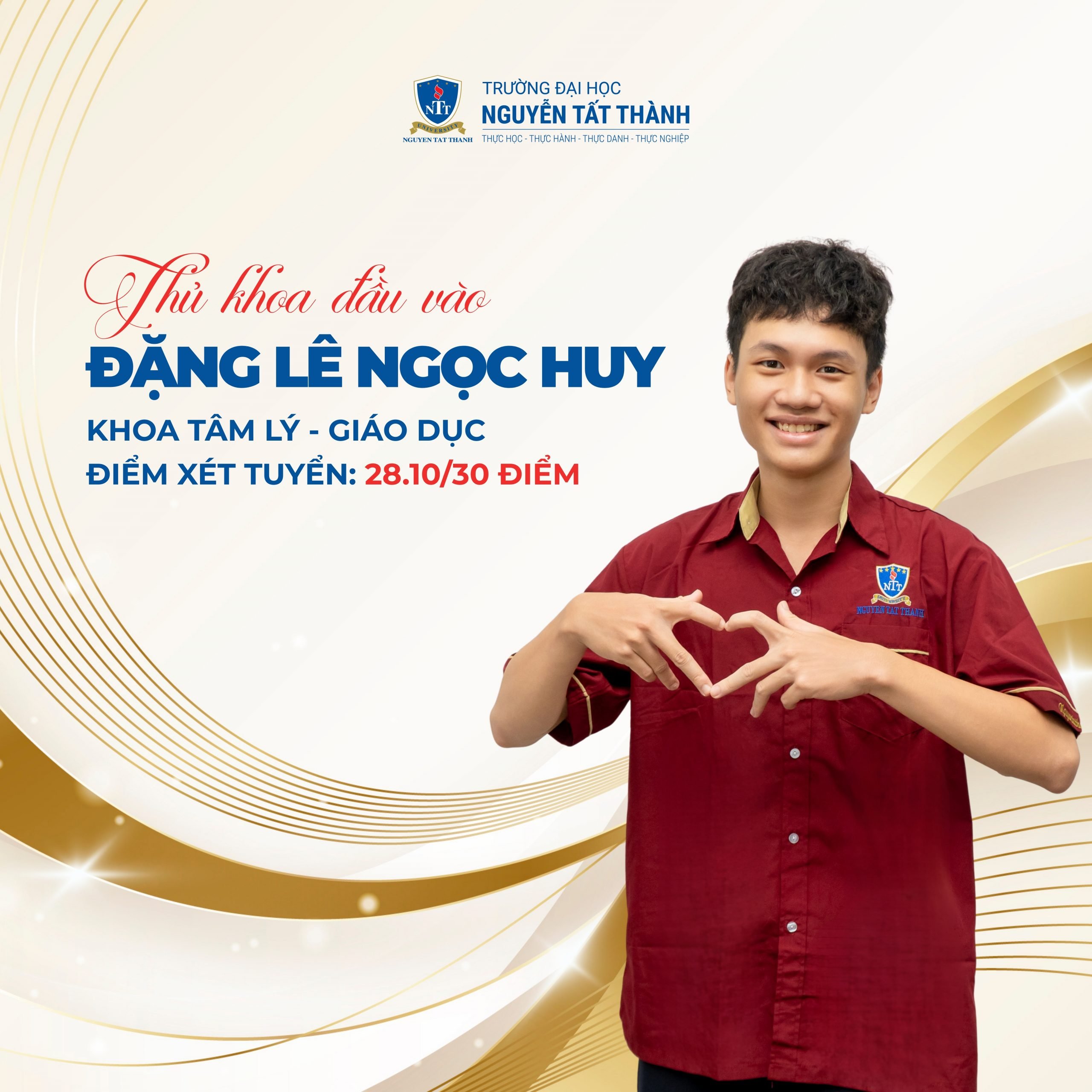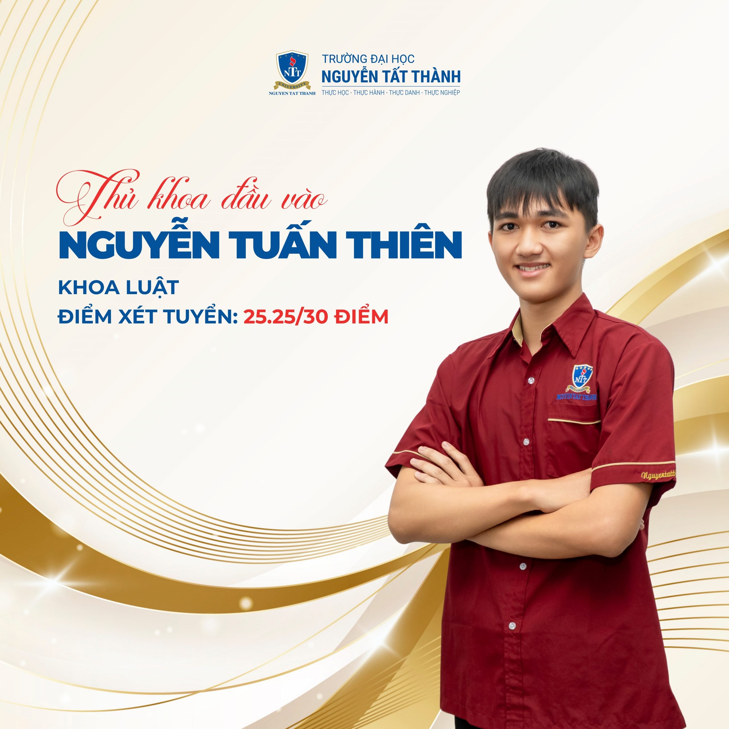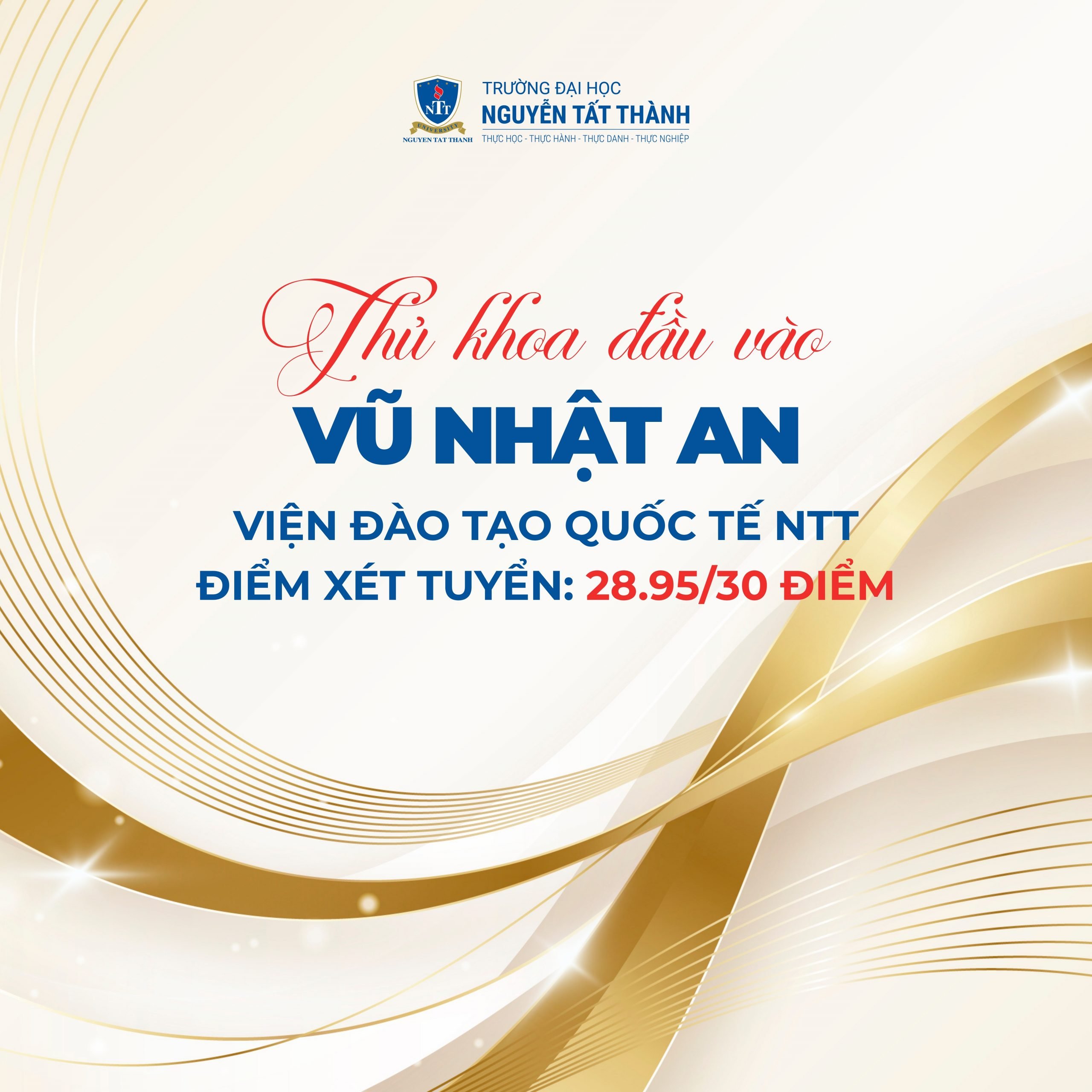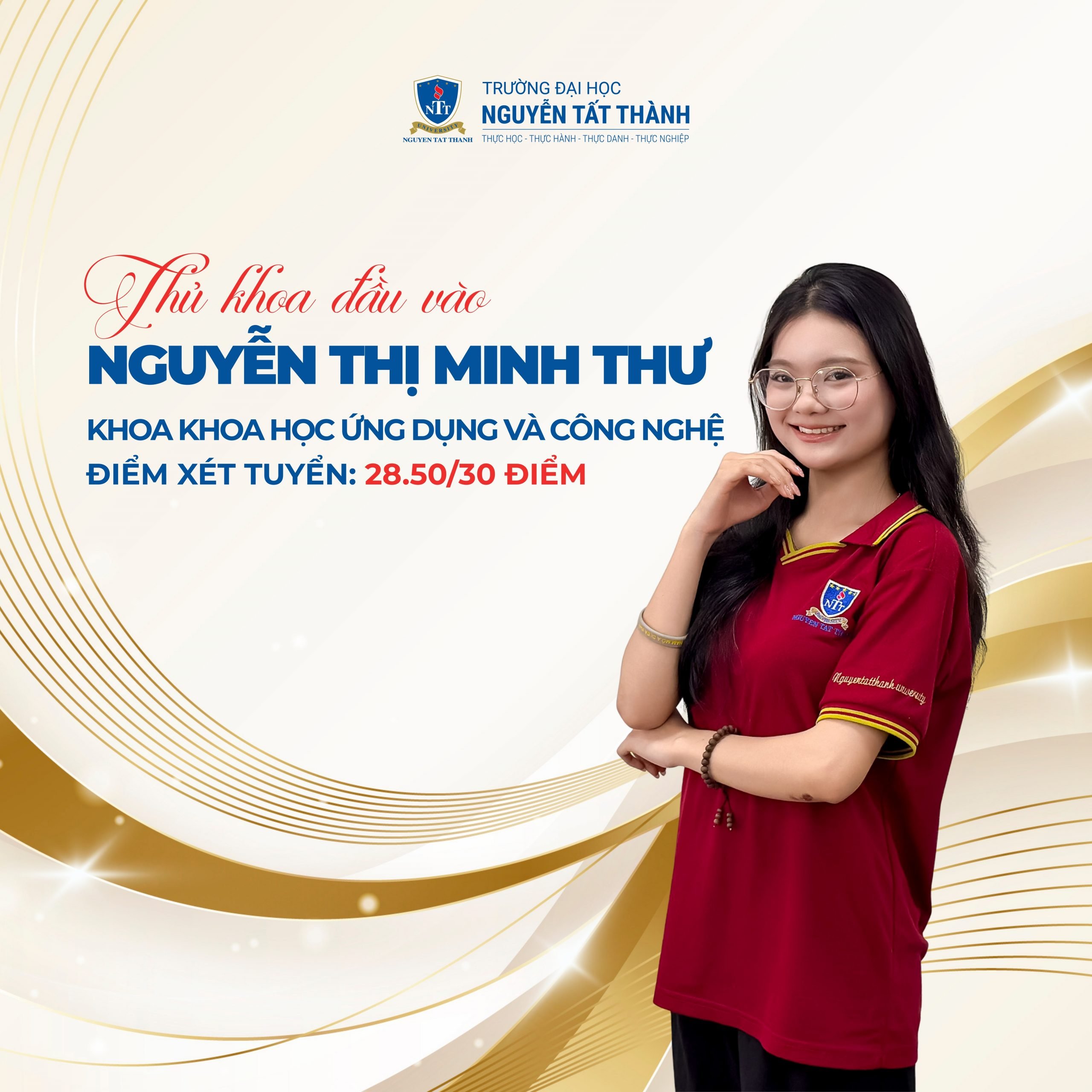 Hành trình chinh phục cánh cửa đại học năm 2025 đã gọi tên 20 thủ khoa đầu đầu vào Trường ĐH Nguyễn Tất Thành – những thí sinh xuất sắc với điểm số ấn tượng, tinh thần học tập nghiêm túc và khát vọng vươn xa. Mỗi thủ khoa là một câu chuyện nỗ lực bền bỉ, là minh chứng cho trí tuệ, bản lĩnh và niềm tin vào con đường mình đã chọn. Trường ĐH Nguyễn Tất Thành tự hào chào đón các bạn – những hạt giống ưu tú, hứa hẹn sẽ tiếp tục tỏa sáng trong môi trường học tập hiện đại tại NTTU.