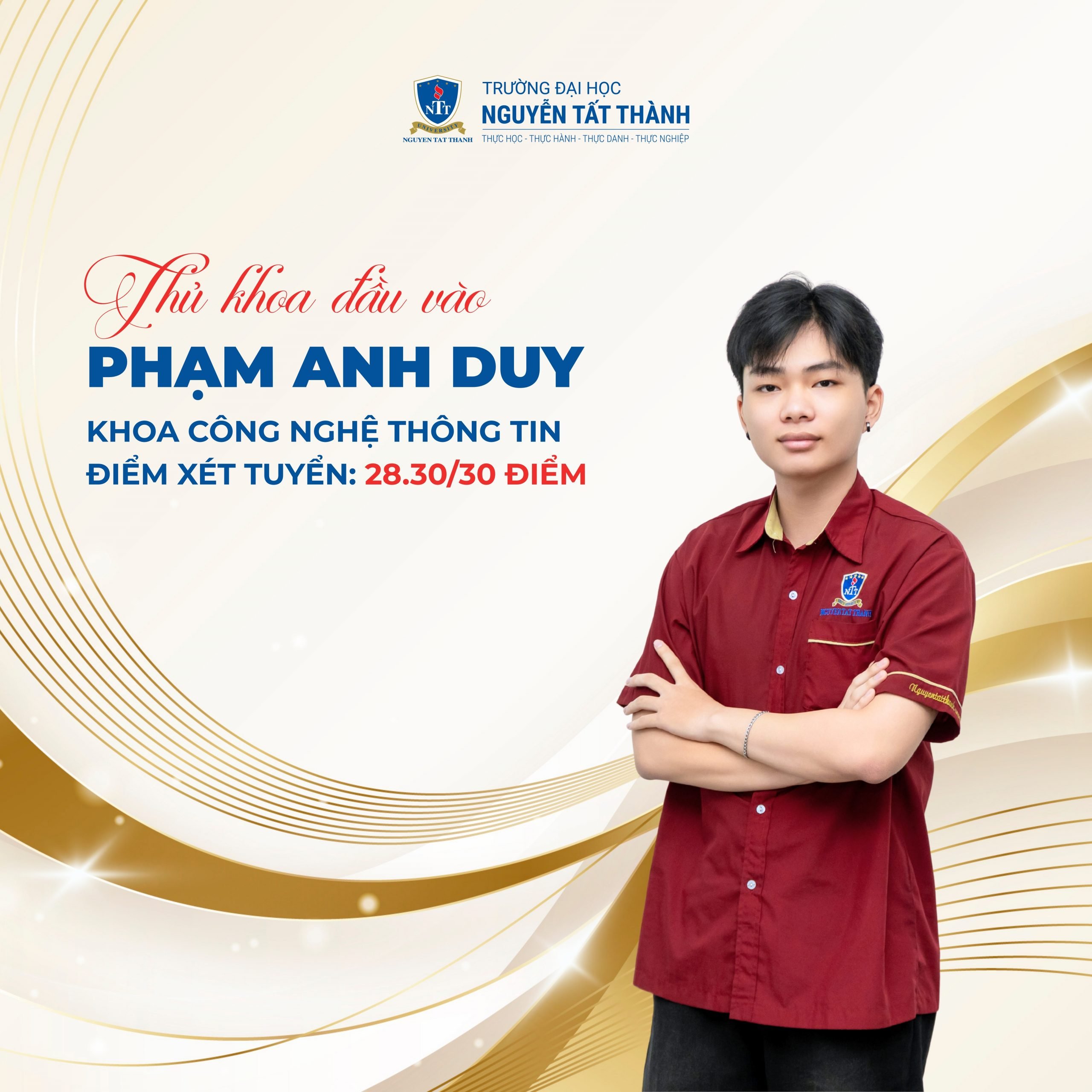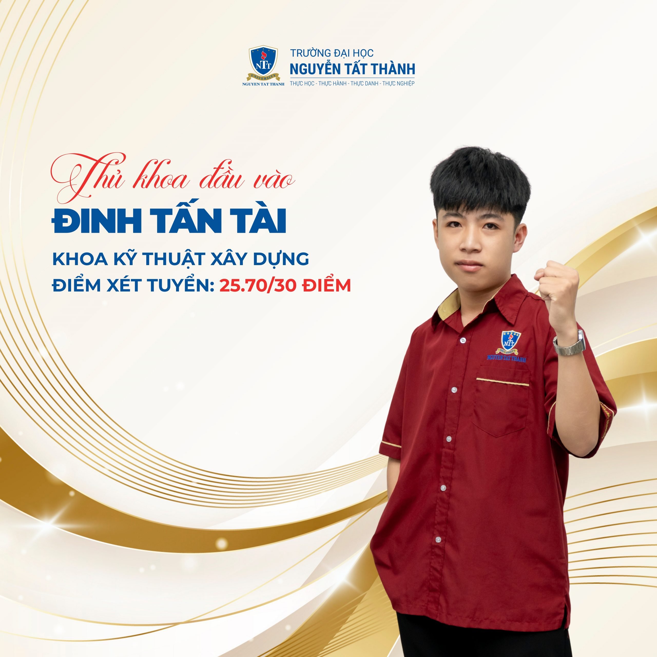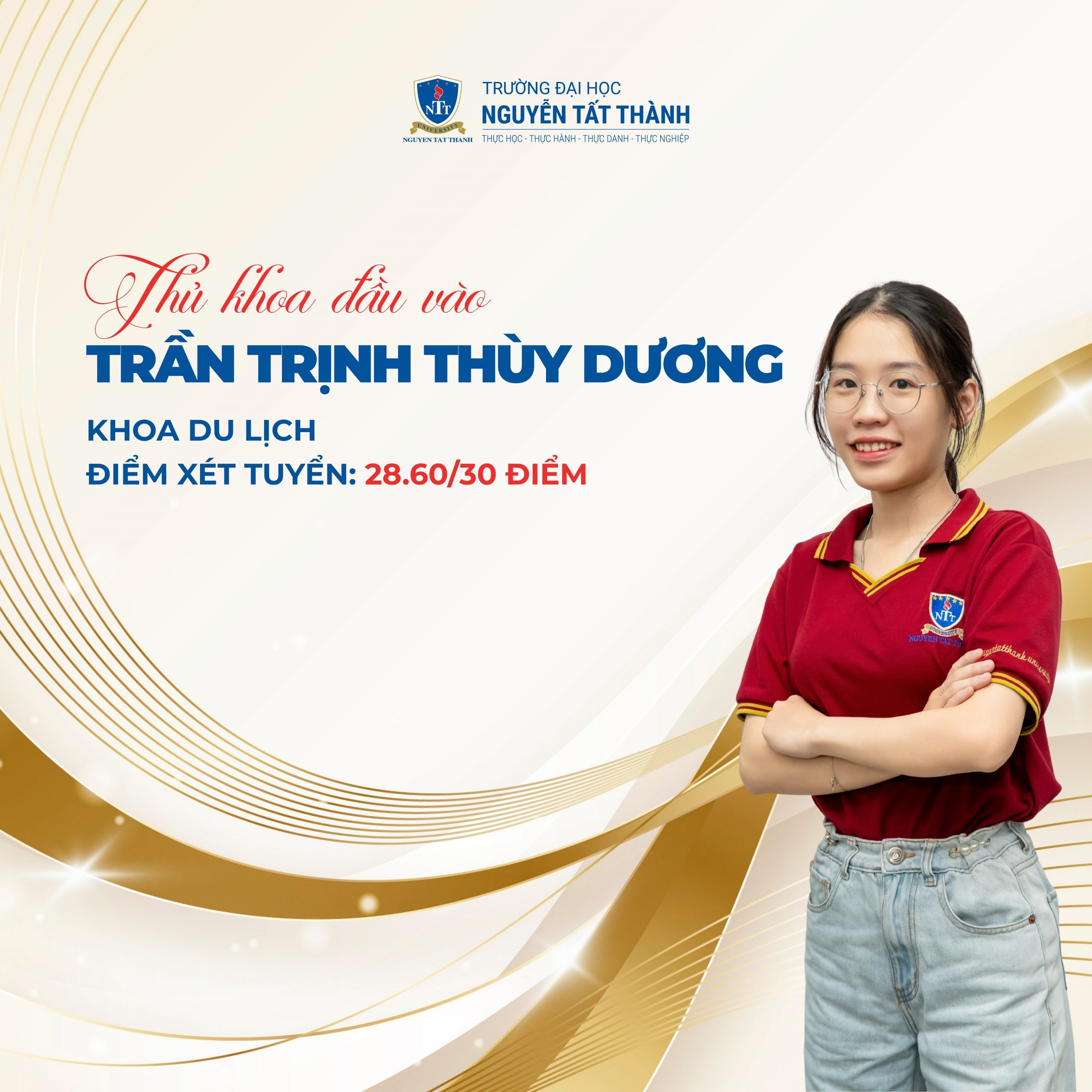 Hành trình chinh phục cánh cửa đại học năm 2025 đã gọi tên 20 thủ khoa đầu đầu vào Trường ĐH Nguyễn Tất Thành – những thí sinh xuất sắc với điểm số ấn tượng, tinh thần học tập nghiêm túc và khát vọng vươn xa. Mỗi thủ khoa là một câu chuyện nỗ lực bền bỉ, là minh chứng cho trí tuệ, bản lĩnh và niềm tin vào con đường mình đã chọn. Trường ĐH Nguyễn Tất Thành tự hào chào đón các bạn – những hạt giống ưu tú, hứa hẹn sẽ tiếp tục tỏa sáng trong môi trường học tập hiện đại tại NTTU.
