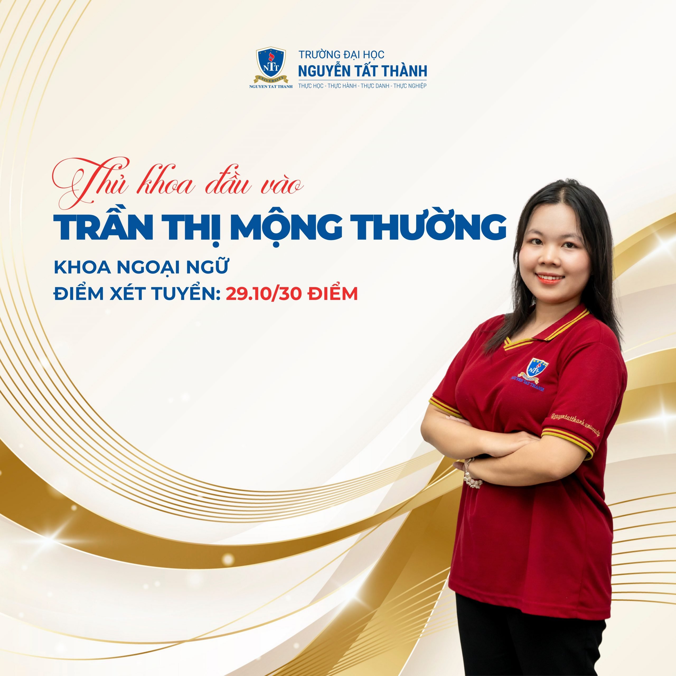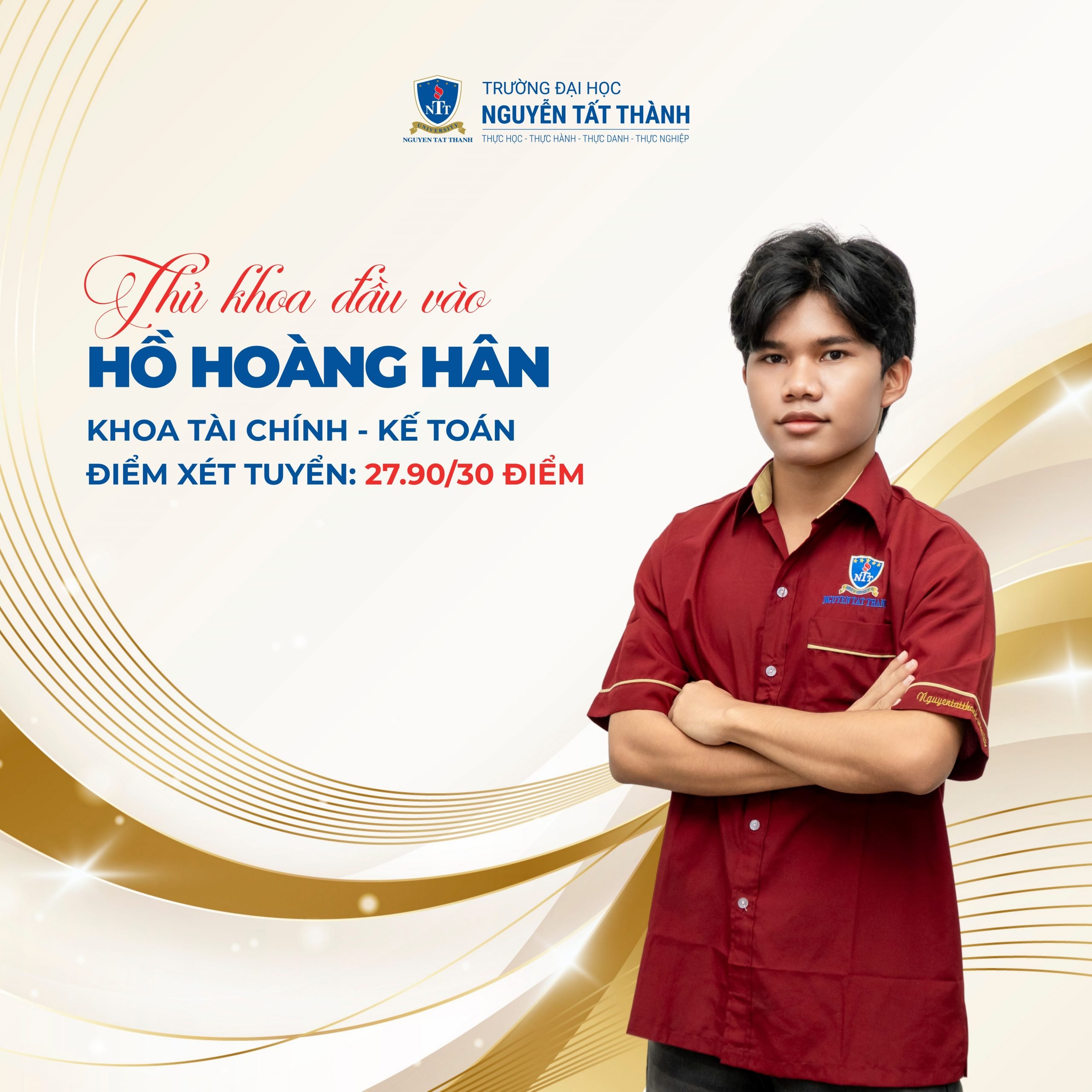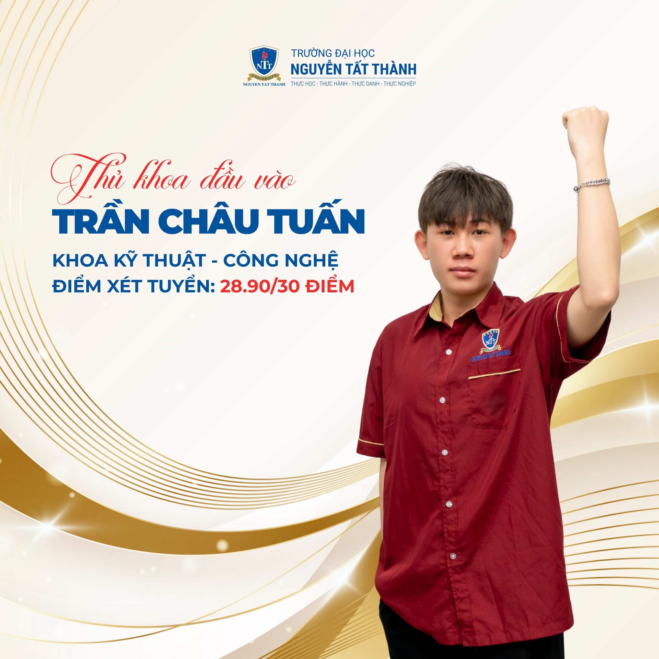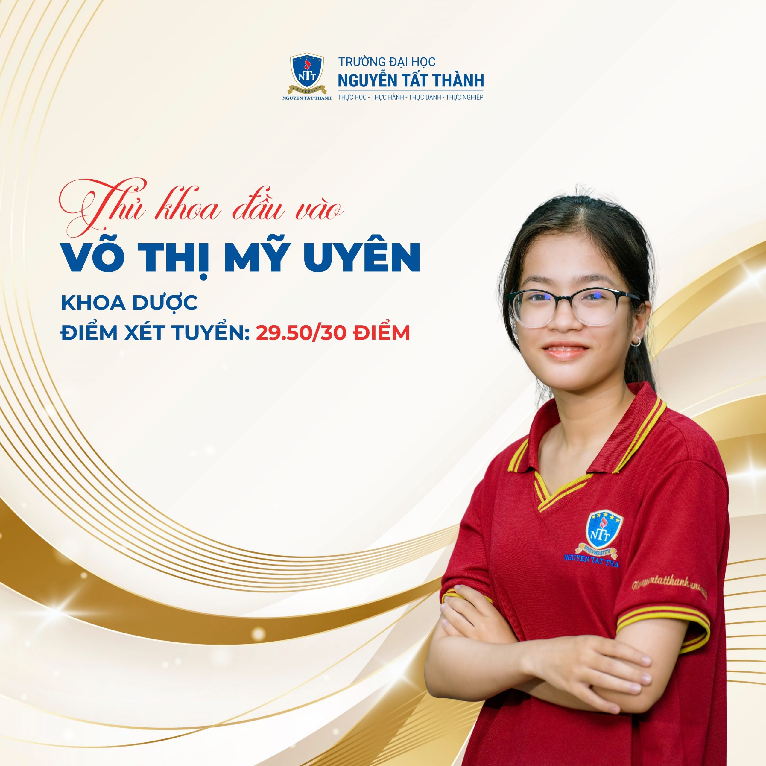 Hành trình chinh phục cánh cửa đại học năm 2025 đã gọi tên 20 thủ khoa đầu đầu vào Trường ĐH Nguyễn Tất Thành – những thí sinh xuất sắc với điểm số ấn tượng, tinh thần học tập nghiêm túc và khát vọng vươn xa. Mỗi thủ khoa là một câu chuyện nỗ lực bền bỉ, là minh chứng cho trí tuệ, bản lĩnh và niềm tin vào con đường mình đã chọn. Trường ĐH Nguyễn Tất Thành tự hào chào đón các bạn – những hạt giống ưu tú, hứa hẹn sẽ tiếp tục tỏa sáng trong môi trường học tập hiện đại tại NTTU.