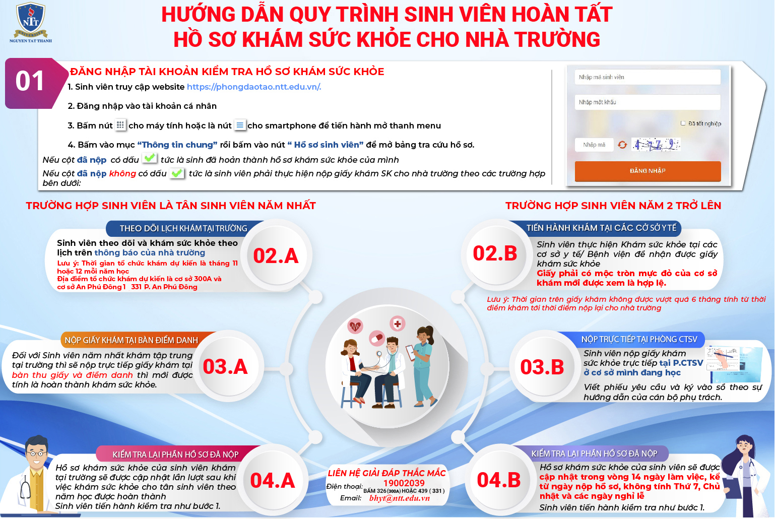[INFOGRAPHIC] HƯỚNG DẪN SINH VIÊN VỀ QUY TRÌNH SINH VIÊN HOÀN TẤT HỒ SƠ KHÁM SỨC KHỎE CHO NHÀ TRƯỜNG