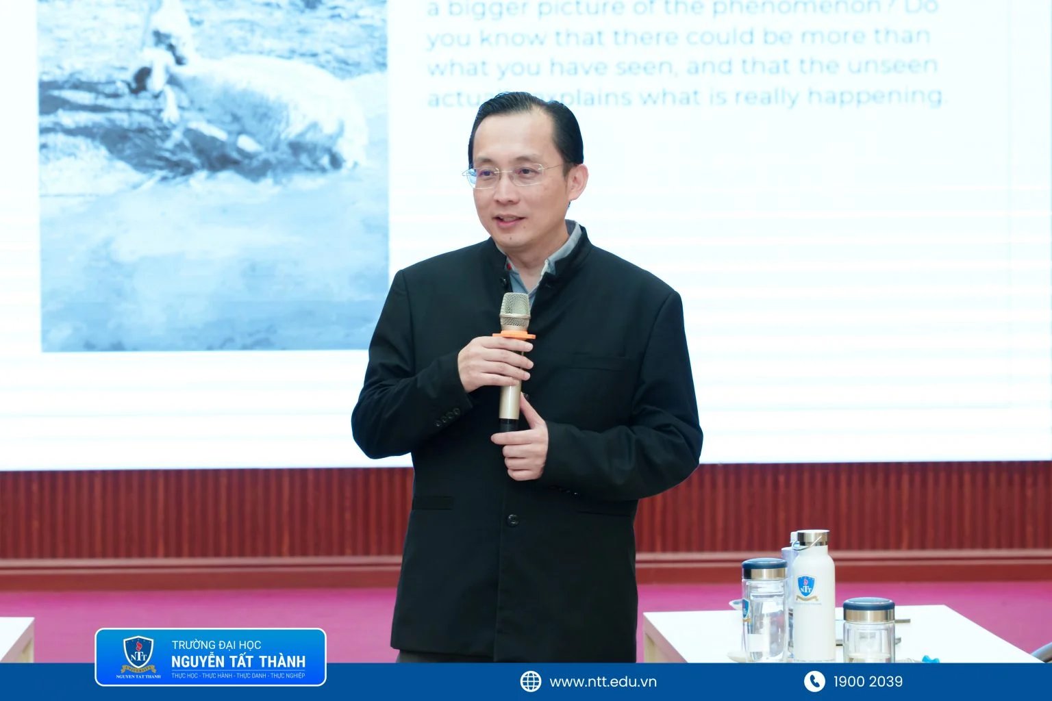 TS. Trần Ái Cầm, Hiệu trưởng Trường ĐH Nguyễn Tất Thành, phát biểu tại lễ khai mạc