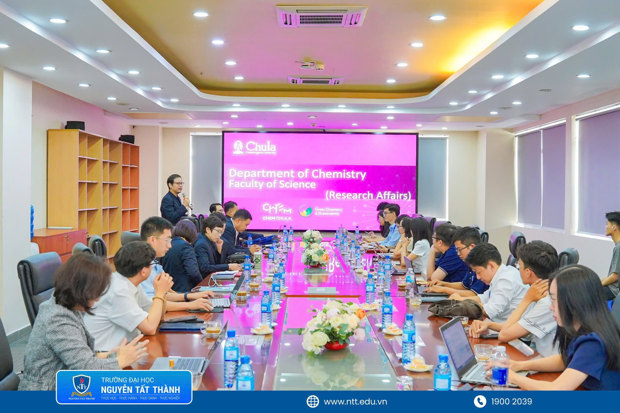 Trong xu thế quốc tế hóa giáo dục đại học ngày càng sâu rộng, việc chủ động thiết lập và phát triển quan hệ hợp tác học thuật với các trường đại học uy tín trong khu vực và trên thế giới đang trở thành chiến lược trọng tâm của nhiều cơ sở giáo dục đại học Việt Nam. Nổi bật trong định hướng đó, vừa qua, Khoa Khoa học Ứng dụng và Công nghệ – Trường Đại học Nguyễn Tất Thành (NTTU) đẩy mạnh quốc tế hóa đã tổ chức Chương trình hợp tác trao đổi nghiên cứu và học thuật với Khoa Khoa học – Trường Đại học Chulalongkorn (Thái Lan), một trong những đại học hàng đầu châu Á.