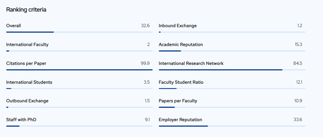 Thêm vào đó, việc đạt được thành tích ấn tượng trong tiêu chí Citations (Trích dẫn) cho thấy sự phát triển mạnh mẽ trong nghiên cứu khoa học của trường, không chỉ nâng cao chất lượng học thuật mà còn tạo ra cơ hội việc làm tốt hơn cho sinh viên, nhất là cơ hội làm việc toàn cầu.