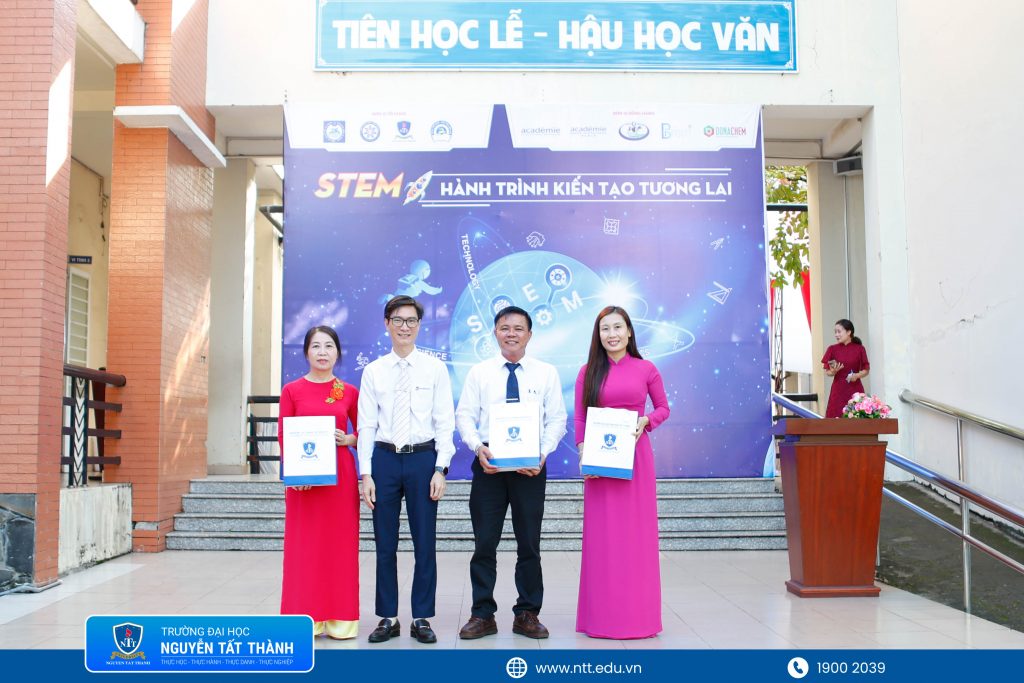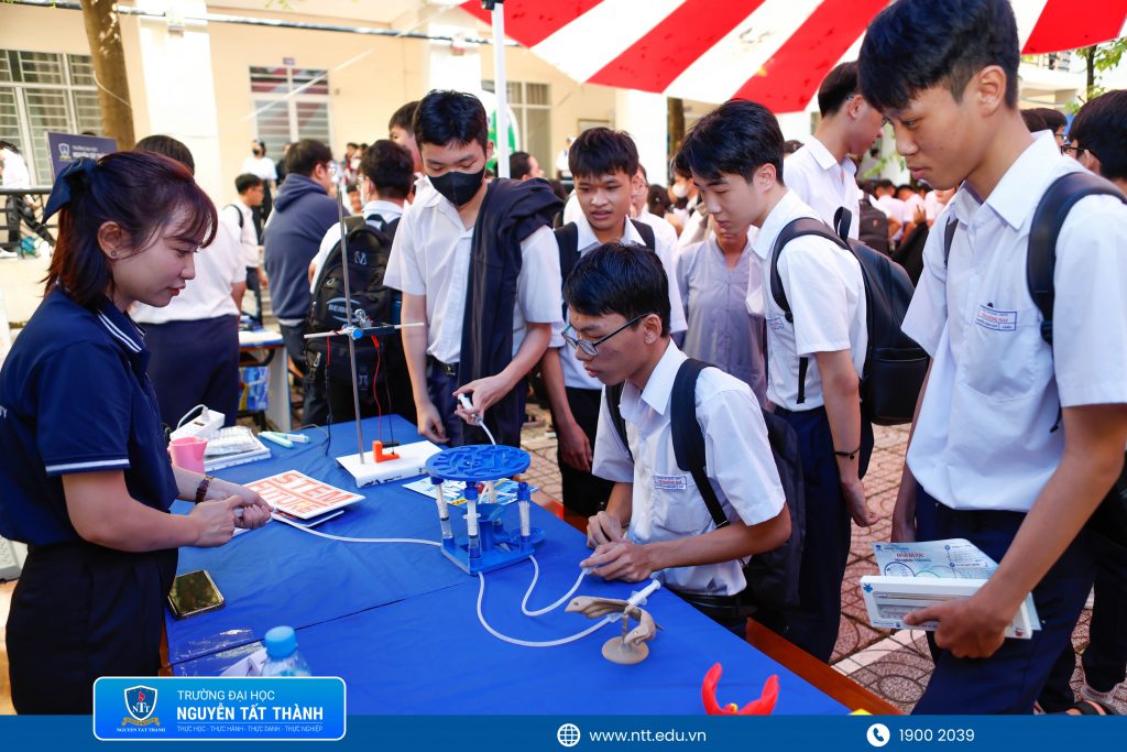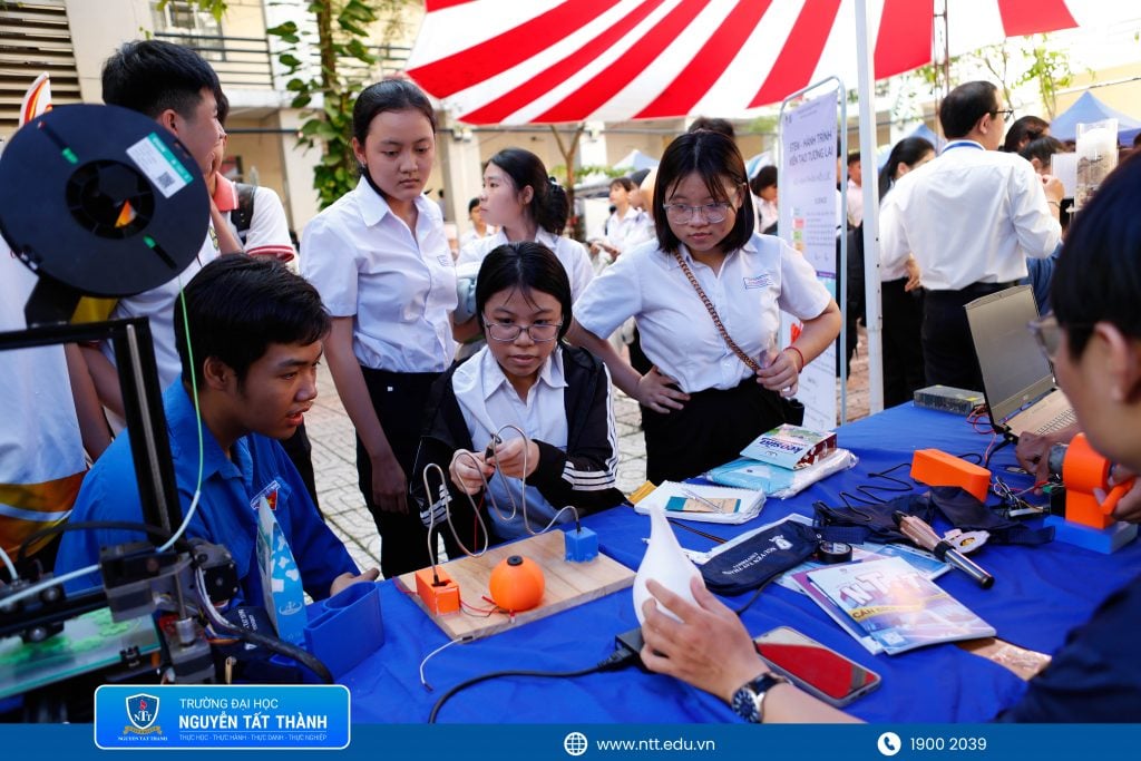 Điểm đặc biệt của ngày hội năm nay chính là sự kết nối mạnh mẽ giữa nhà trường, doanh nghiệp và cộng đồng. Học sinh có cơ hội tham gia hơn 10 hoạt động trải nghiệm hướng nghiệp, được các giảng viên và chuyên viên đến từ Trường Đại học Nguyễn Tất Thành hướng dẫn. Nhiều doanh nghiệp cũng mang đến những mô hình sản xuất – công nghệ ứng dụng thực tế, giúp học sinh hiểu rõ hơn cách kiến thức STEM được áp dụng trong đời sống và công nghiệp hiện đại.