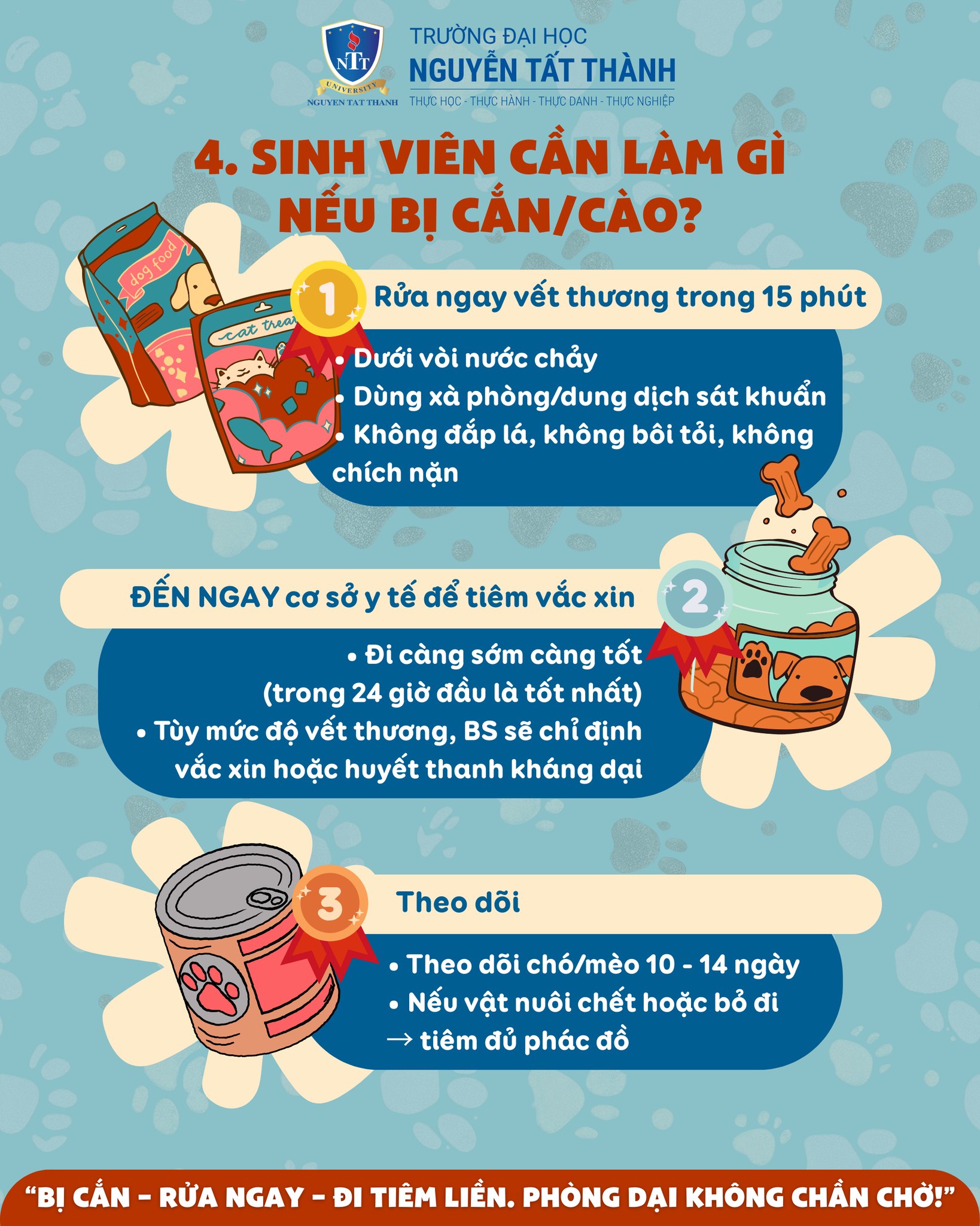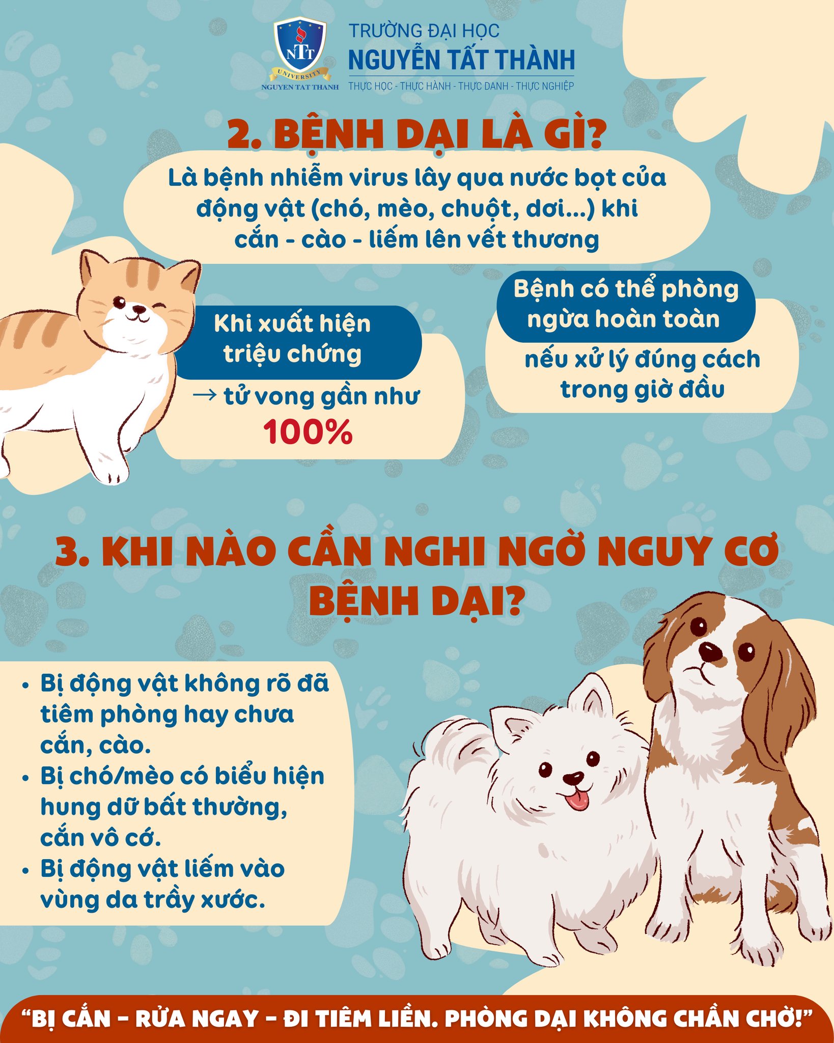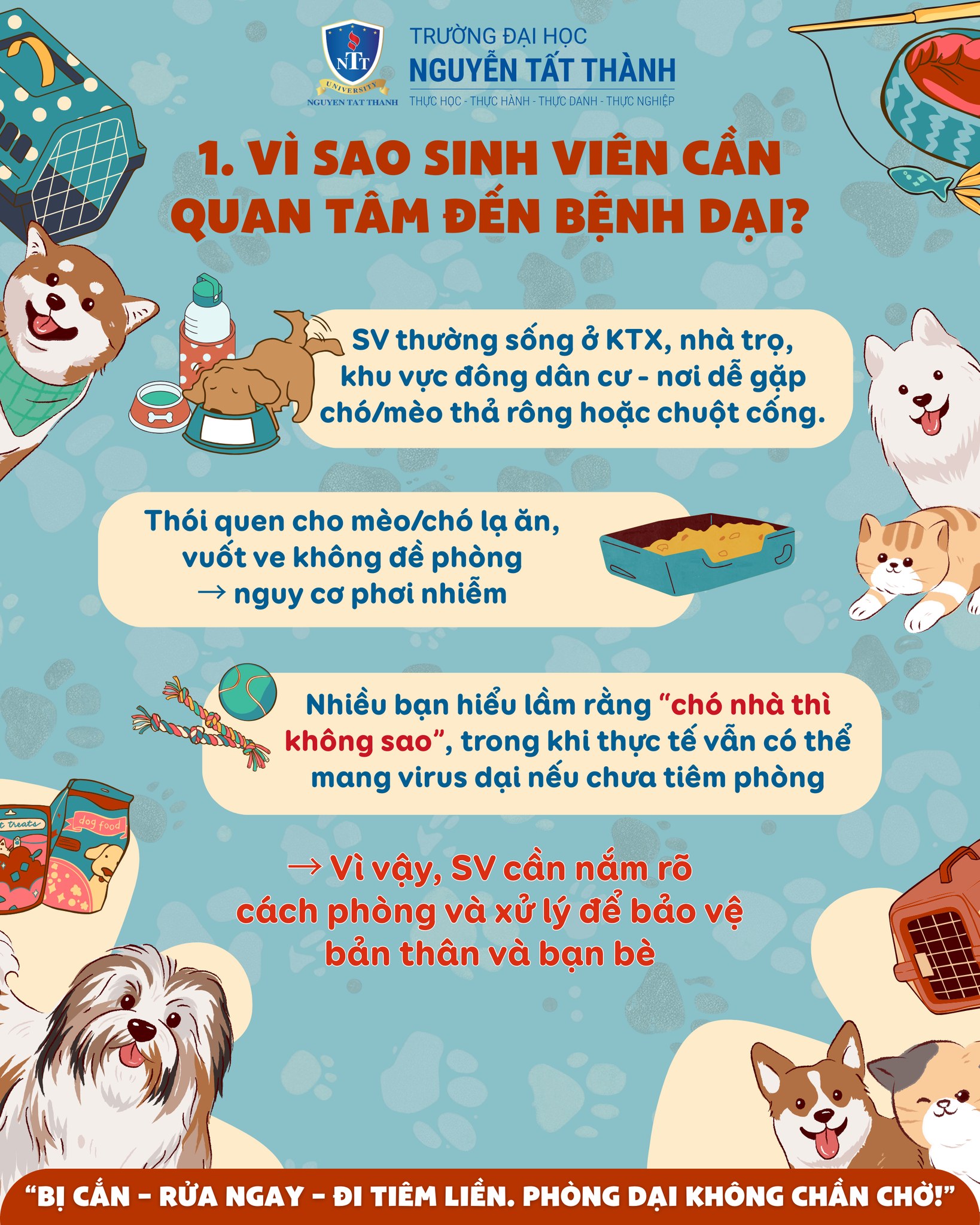 Các bạn sinh viên NTTU ơi, chúng ta thường rất yêu quý các “boss” chó, “hoàng thượng” mèo, và hay có thói quen cho động vật đi lạc ăn tại khu trọ hay ký túc xá. Nhưng bạn có biết: Động vật càng đáng yêu, nguy cơ tiềm ẩn bệnh dại càng khó lường