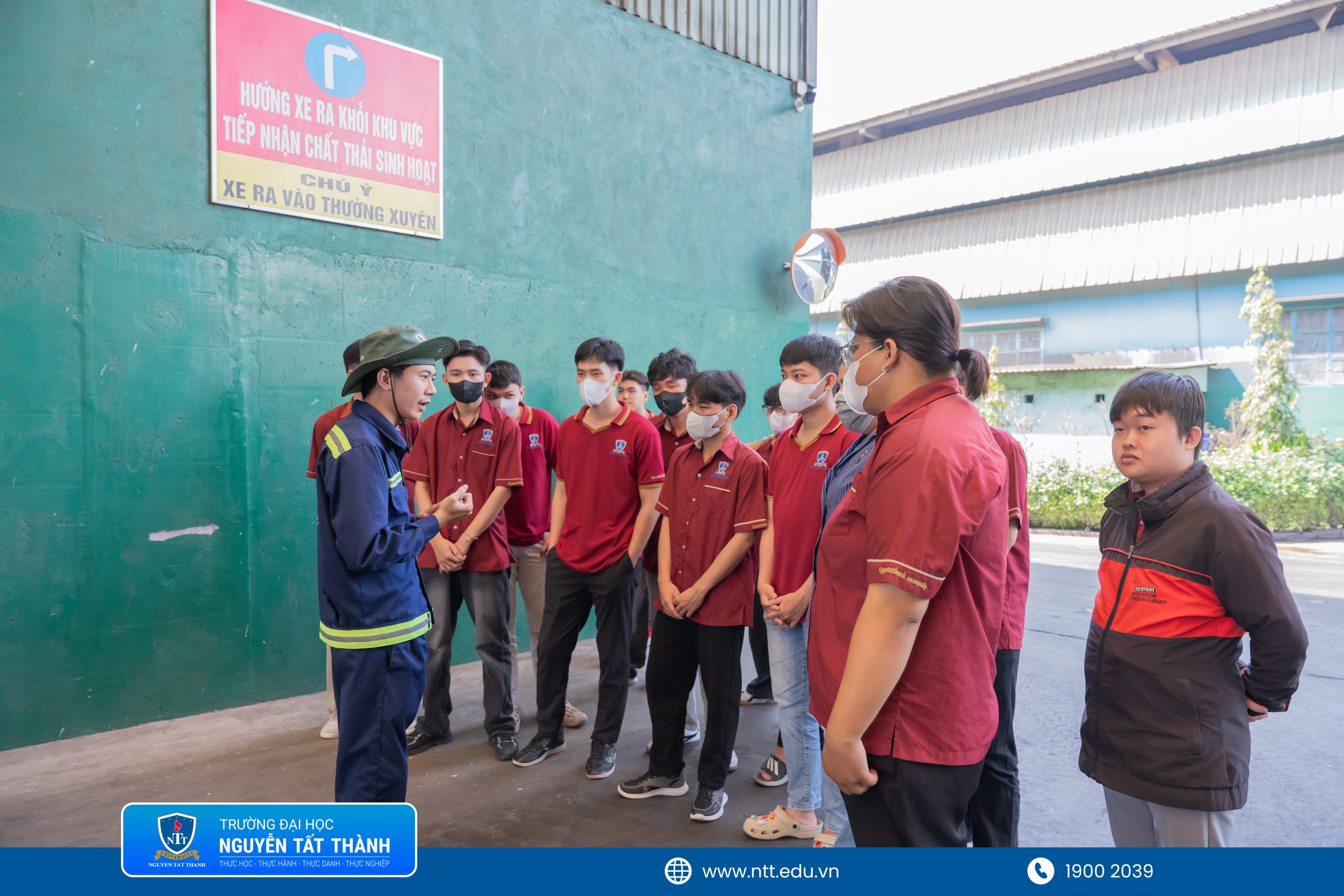 Sinh viên NTTU trực tiếp tìm hiểu quy trình vận hành hệ thống xử lý chất thải, gắn kiến thức chuyên ngành với thực tiễn sản xuất