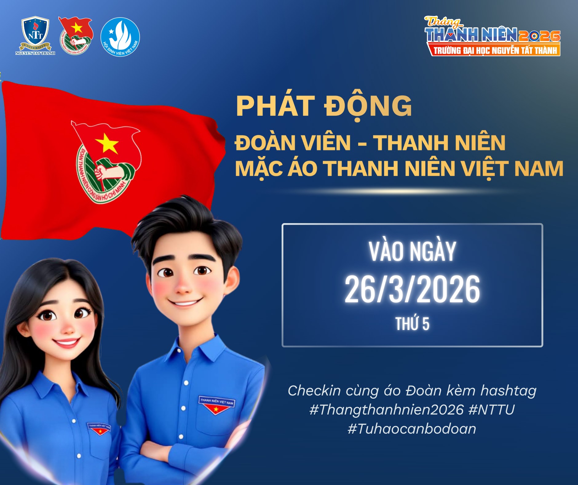 PHÁT ĐỘNG ĐOÀN VIÊN – THANH NIÊN NTTU MẶC ÁO THANH NIÊN VIỆT NAM CHÀO MỪNG NGÀY 26/3