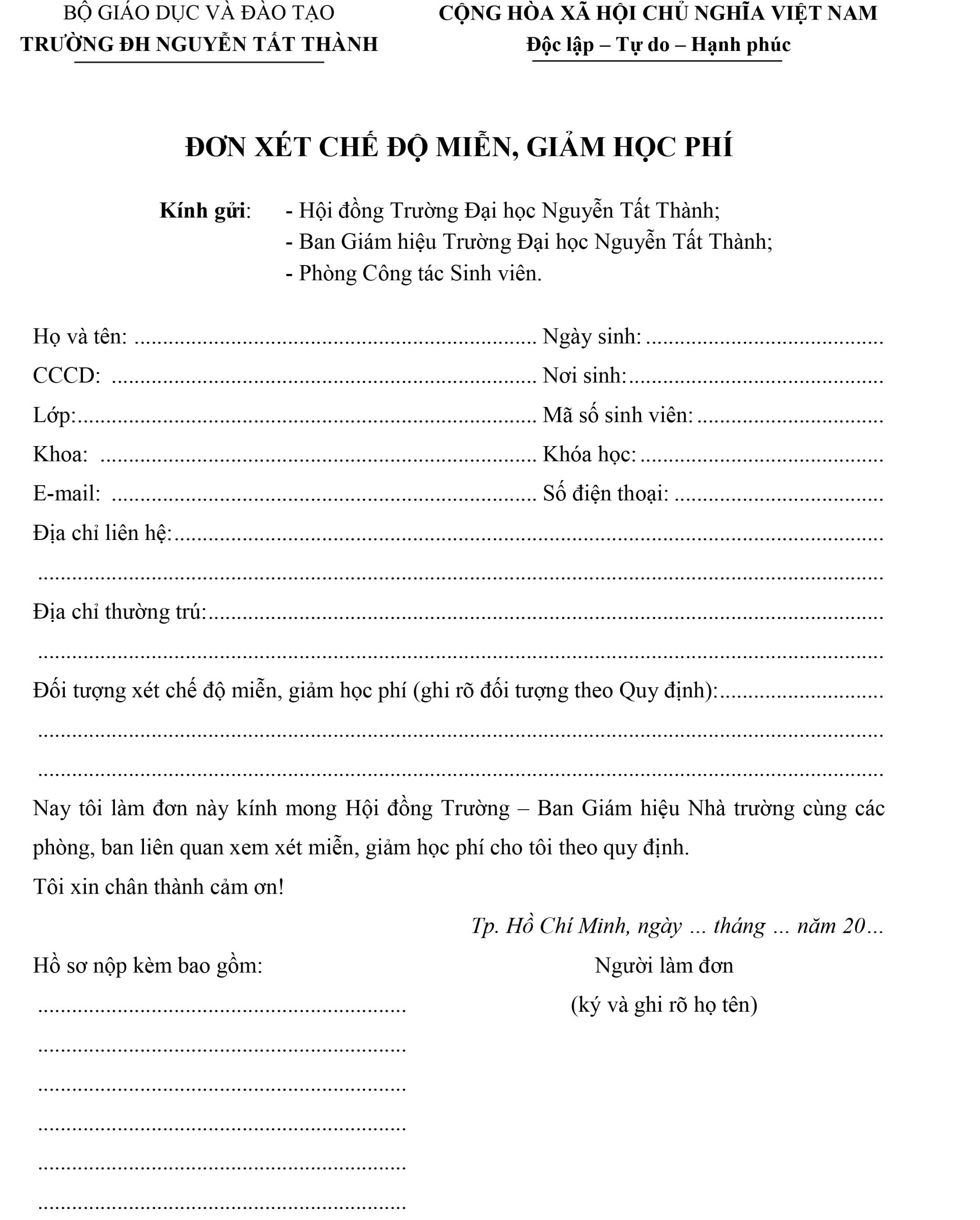 BIỂU MẪU ĐƠN XÉT CHẾ ĐỘ MIỄN GIẢM HỌC PHÍ
