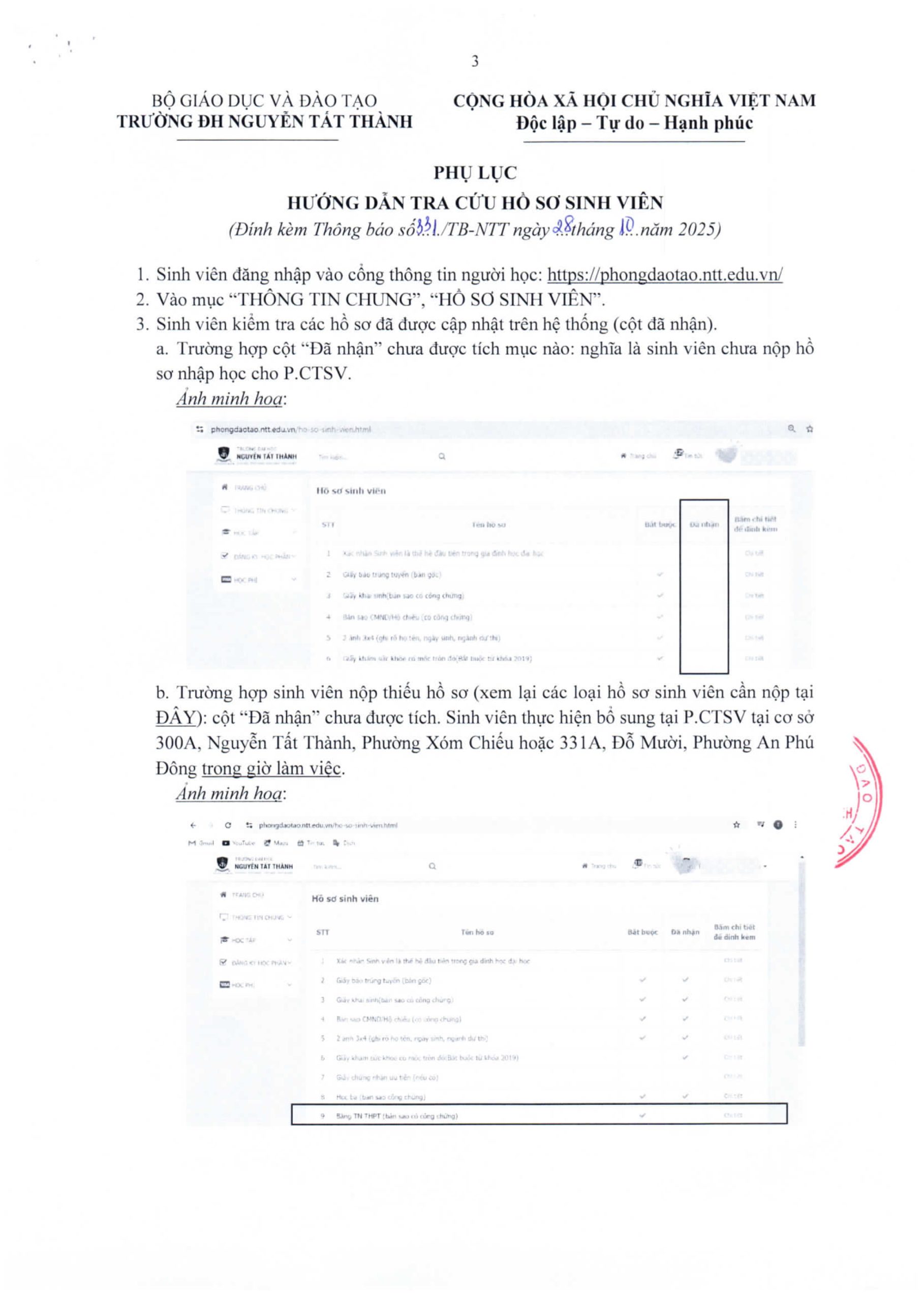 Danh sách nhắc nhở nộp hồ sơ nhập học